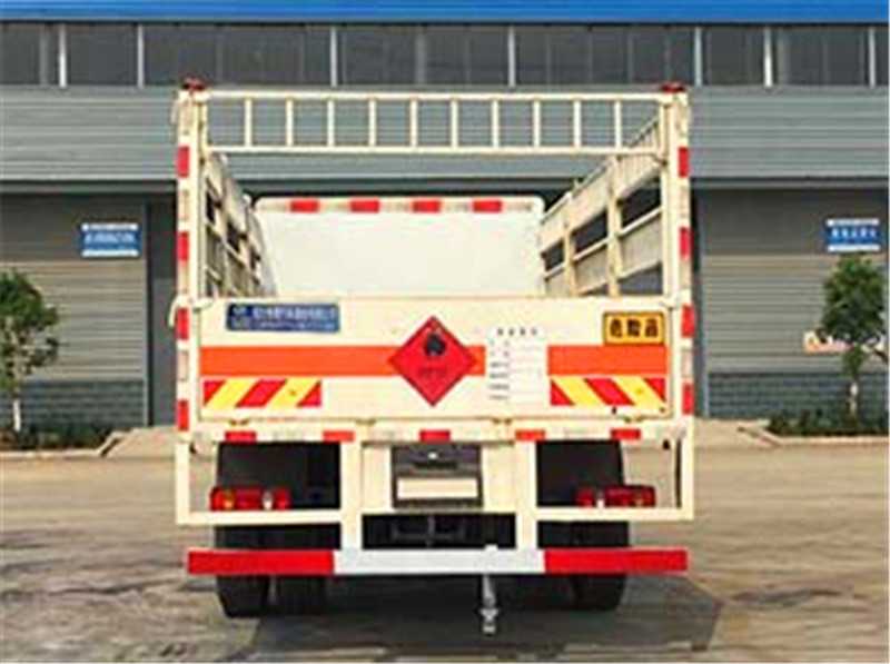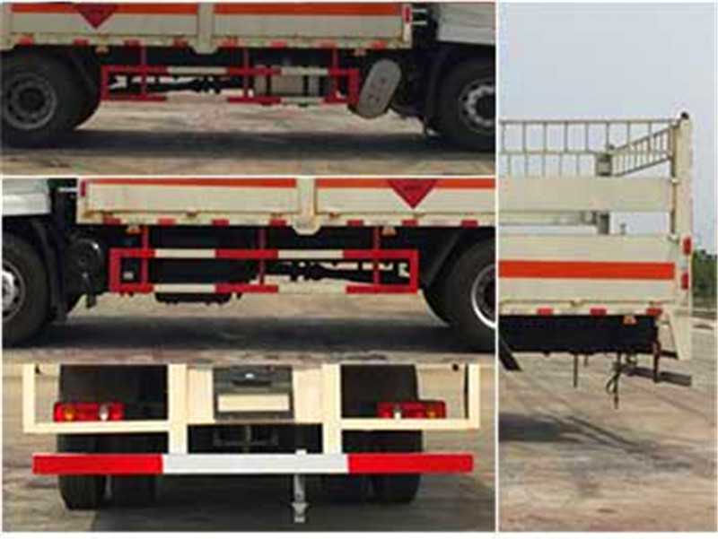 其它 | 該車適用于運輸危險物品為?;愤\輸車。主要用于運輸具有獨立容器(瓶)包裝的液化石油氣,丁烷,乙炔,乙烷,丙烷,丁烯,打火機或打火機加油器,二氧化碳,壓縮氧(氮,空氣,氦,氬,氖),類項號:2.1,2.2。該車運輸?shù)慕橘|(zhì)為2.1項易燃?xì)怏w時,車輛采用”易燃?xì)怏w”標(biāo)識牌,運輸?shù)慕橘|(zhì)為2.2項非易燃無毒氣體時,車輛采用”不燃?xì)怏w”標(biāo)識牌。整車長/軸距/前懸/后懸對應(yīng)關(guān)系為(mm):9000/5000/1430/2570, 8600/4700/1430/2470,該車安裝帶有衛(wèi)星定位功能的行駛記錄儀,僅采用前盤制動器和安裝ABS以及前置消聲器的底盤,采用子午線輪胎,前置排氣管,安裝限速裝置,限速80km/h。安全裝置為導(dǎo)靜電帶,用于防止靜電。側(cè)防護(hù)和后防護(hù)裝置材料材質(zhì)為Q235B碳鋼,側(cè)防護(hù)與箱體底部焊接連接,后防護(hù)裝置與車架采用焊接連接。后防護(hù)截面尺寸(mm):140×50,離地高度為500mm。ABS型號:3631010-C2000,ABS 8;ABS生產(chǎn)廠家:東科克諾爾商用車制動系統(tǒng)(十堰)有限公司。 隨底盤選裝駕駛室前面罩,選裝側(cè)窗玻璃;駕駛室頂部中間三個裝飾燈為選裝件;前霧燈為選裝件;駕駛室前臉擾流罩為選裝件。 | ||